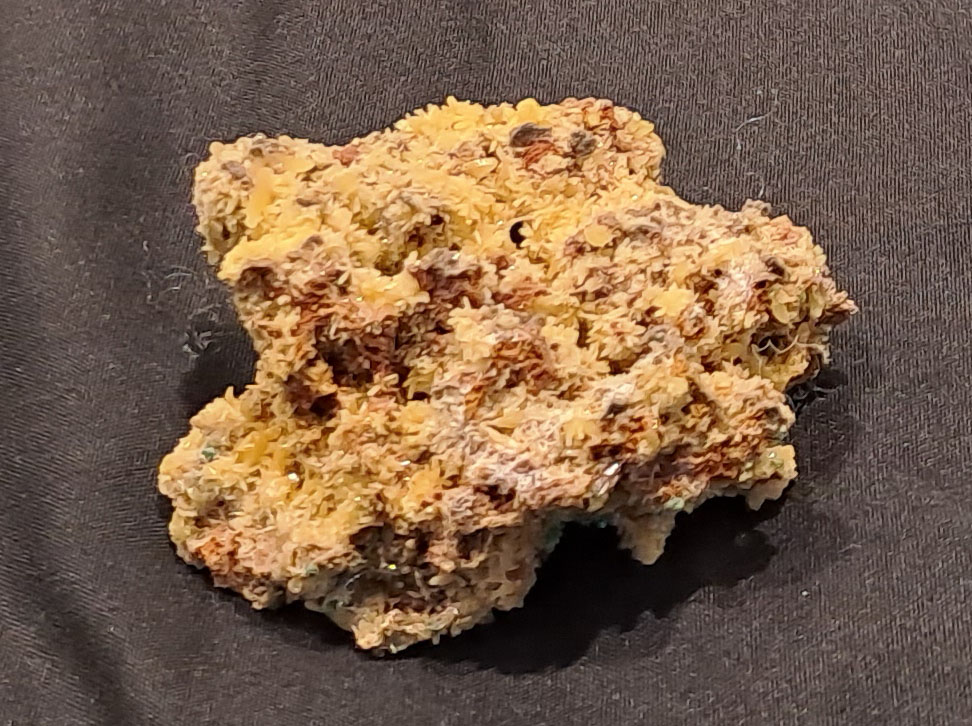 Acicular crystals of yellow Mimetite covering the matrix of this specimen from Tsumeb Mine, Namibia